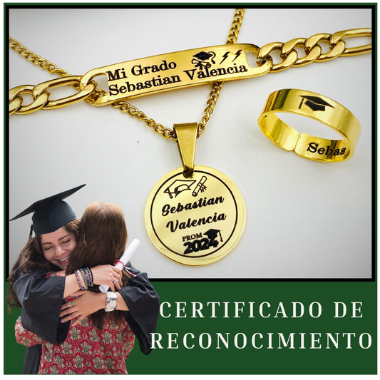 Anillo + Collar + Pulsera🎓 de Grado Personalizados... 👉💖GRATIS💖 Certificado de Reconcomiento